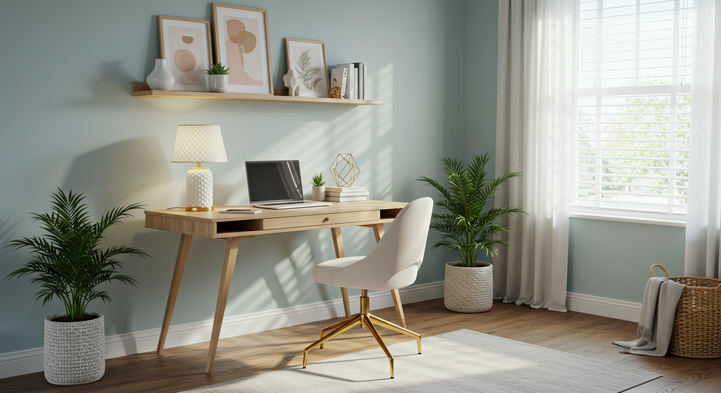 Picking colors, patterns, and materials that address the above categories can help you to design a home office that is conducive to your success with remote work.